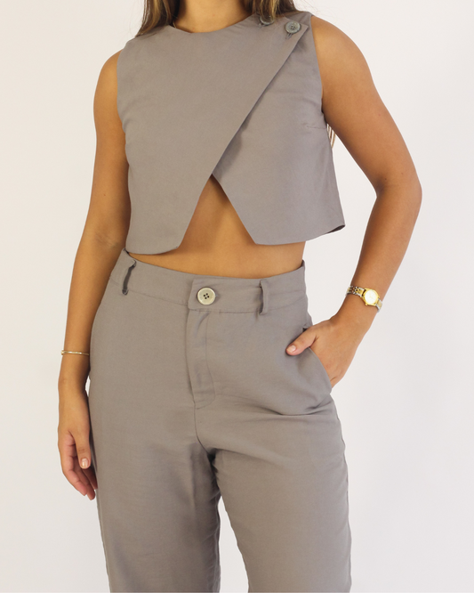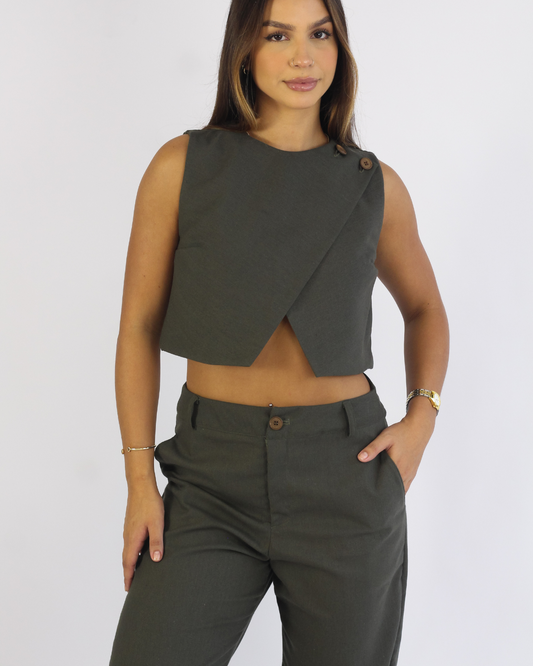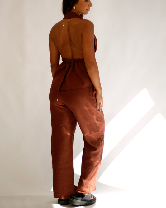 Calça Pantalona Marrom - Viscose Alfaiataria